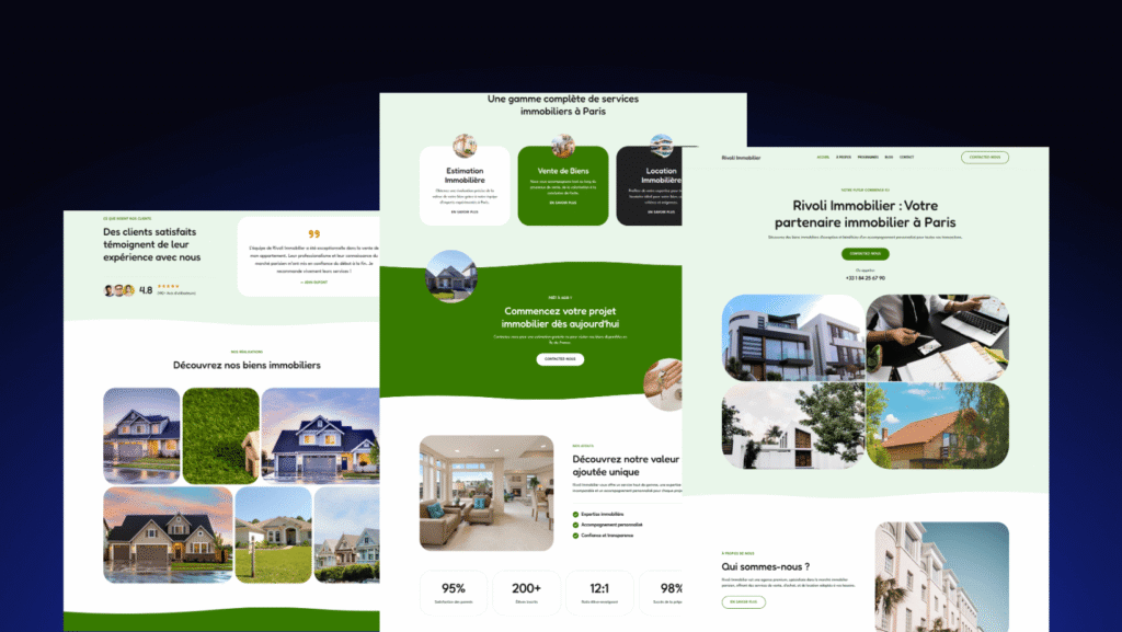 Projet de site web stratégique pour une agence immobilière, conçu pour valoriser les biens, renforcer la crédibilité et inciter à la prise de contact.