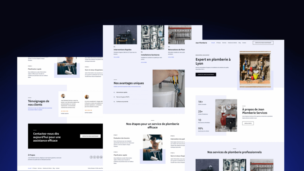 Projet de site web stratégique pour une activité de plomberie, pensé pour structurer l’offre, renforcer la crédibilité et orienter les visiteurs vers la prise de contact.